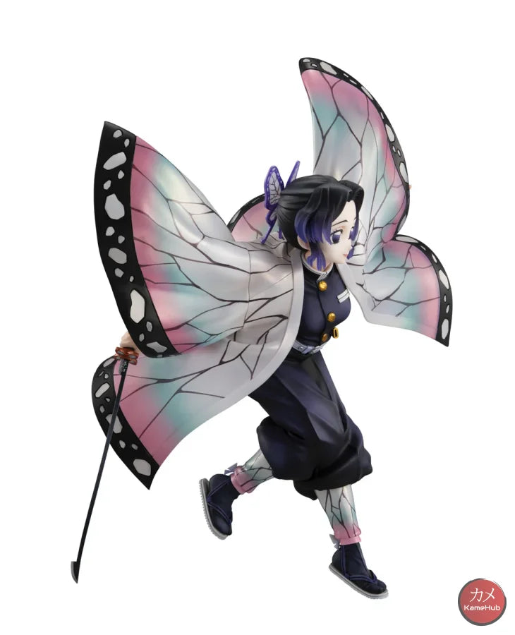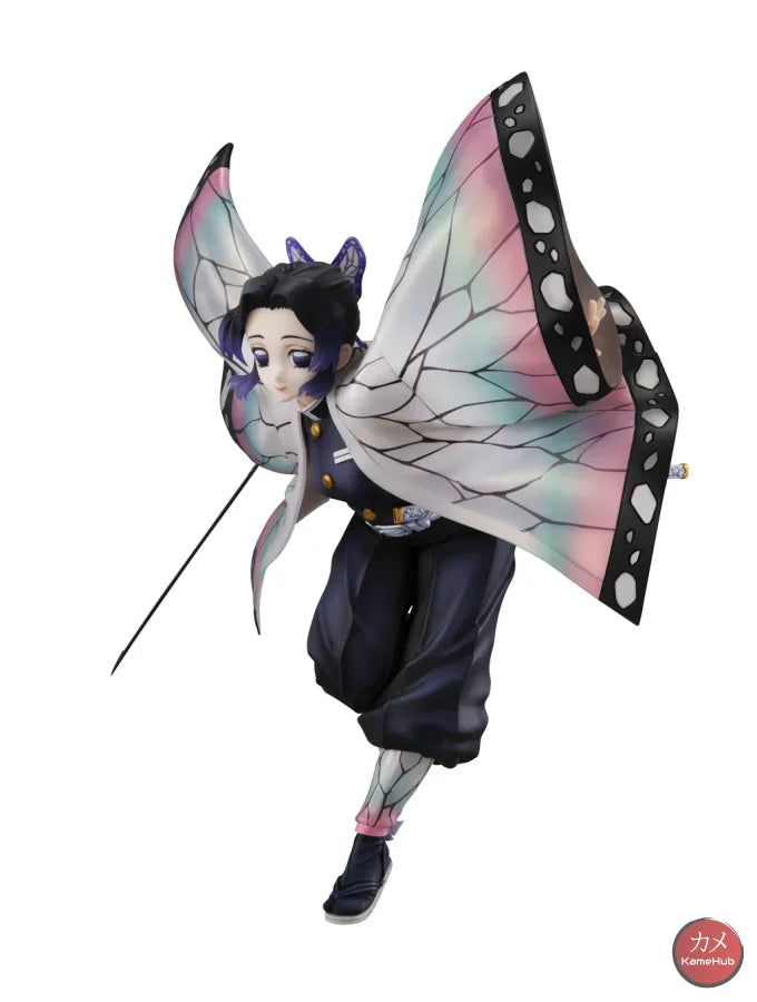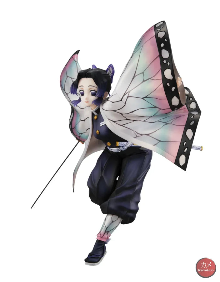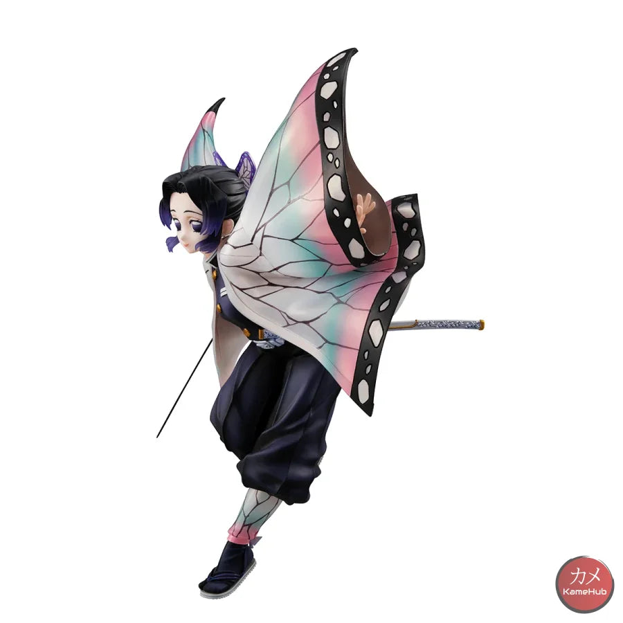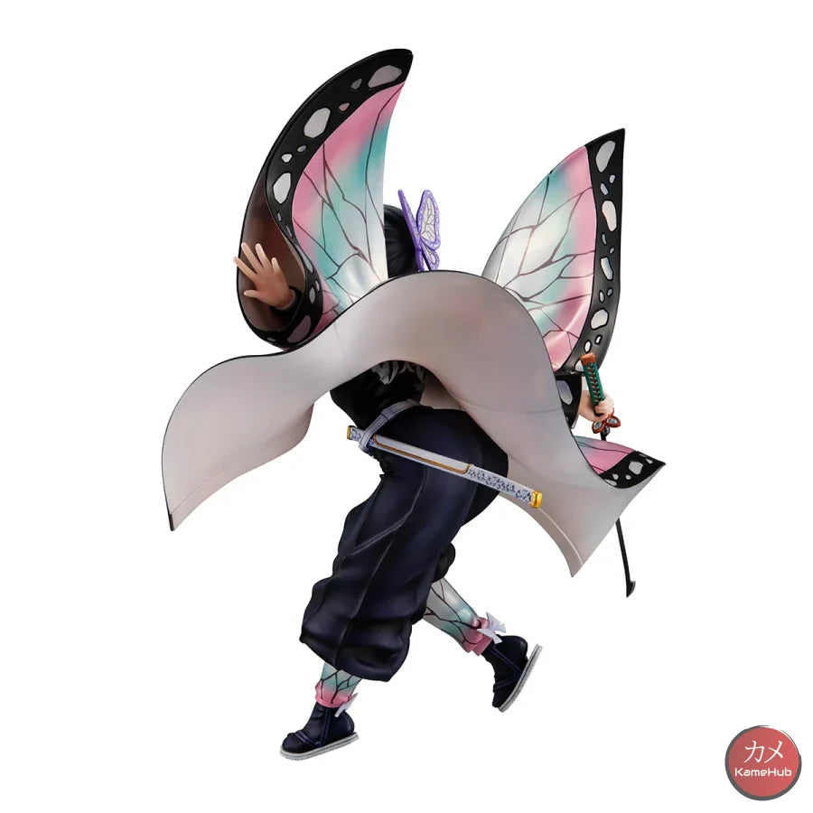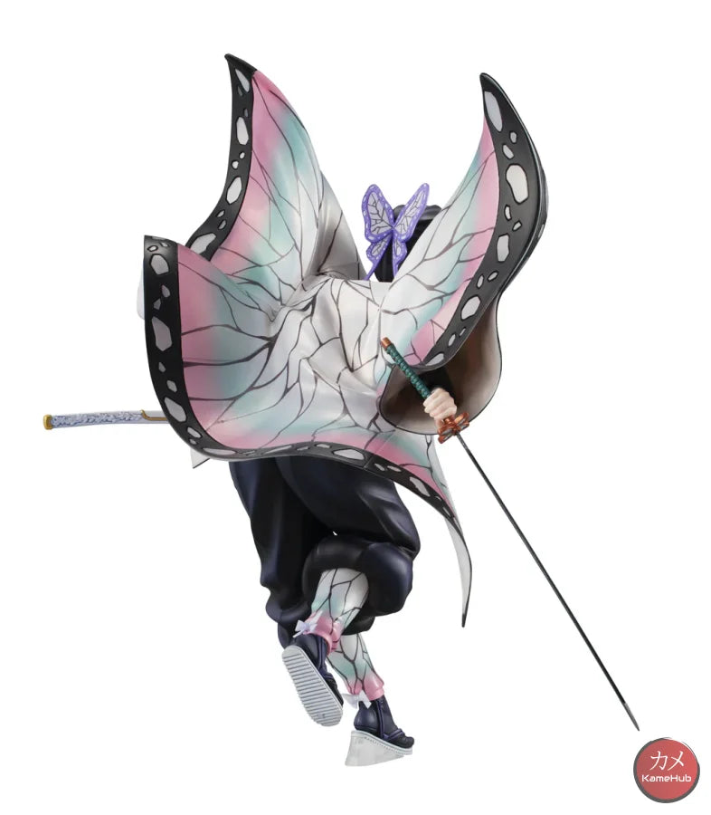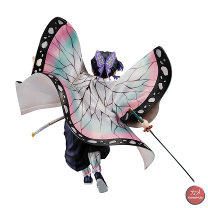 Shinobu is depicted as she seems to land lightly from the sky, the pattern of the haori jacket has been designed to recreate the effect of a butterfly's wings