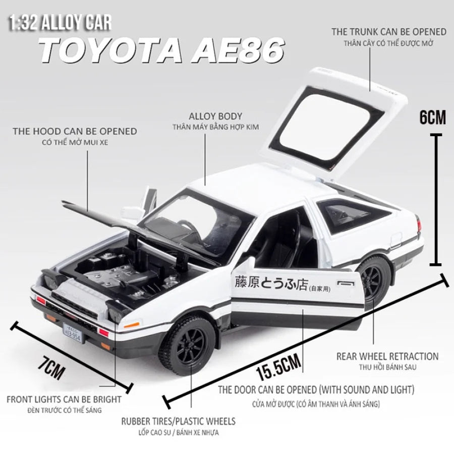 Toyota Trueno AE86 1:32 Scale Metal Diecast Model with Sounds and Lights.