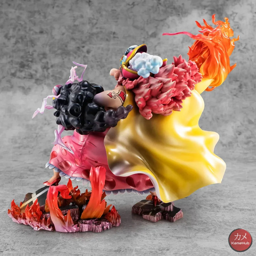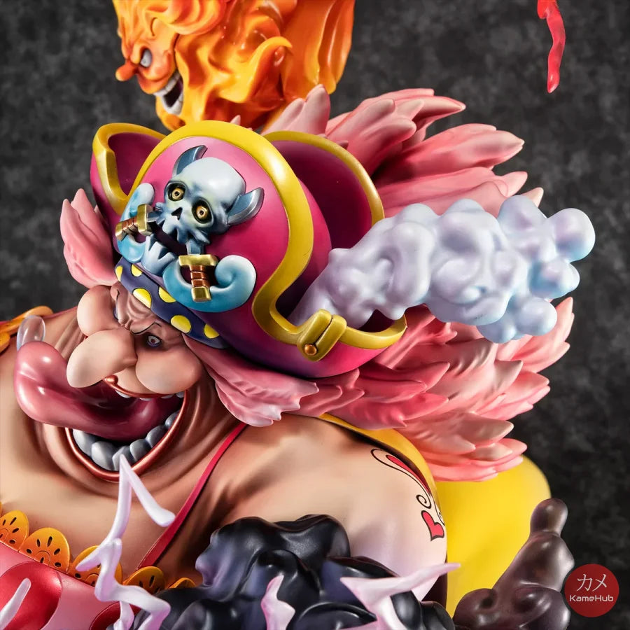 The Figure was sculpted with Big Mom wearing the iconic Cake Island outfit throughout and posing with the black cloud Zeus on the left and Prometheus the sun on the right. It is the definitive Big Mom figure in the highest distinctive quality of the Wa-Maximum series