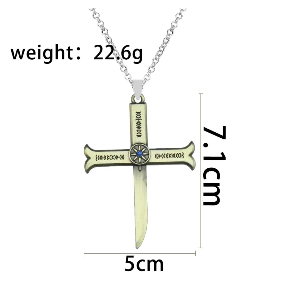 Keychains and Necklaces taken from the One Piece Anime and inspired by the Sword of Dracule Mihawk made of Zinc Alloy measuring 5 x 7 cm.
