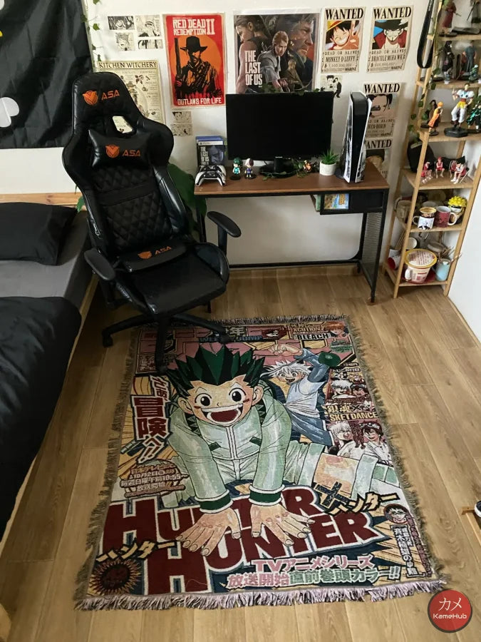 Hunter x Hunter rug inspired by the covers of the Weekly Shonen Jump Magazine with Gon Freecss and Killua Zoldyck, 130 x 160 cm made of polyester blended cotton with a weight of 1.2 kg
