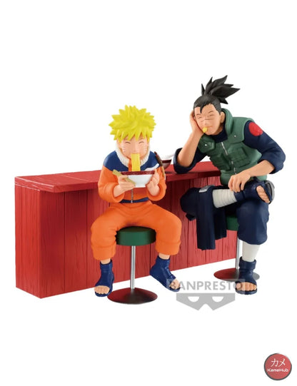 Uzumaki Naruto and Iruka Sensei at Ichiraku's Ramen Action Figure Original Bandai Banpresto Complete Set 2 Pcs of 18cm in PVC.
