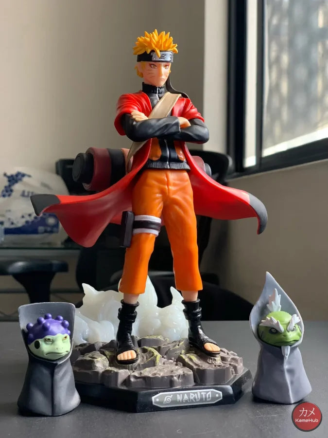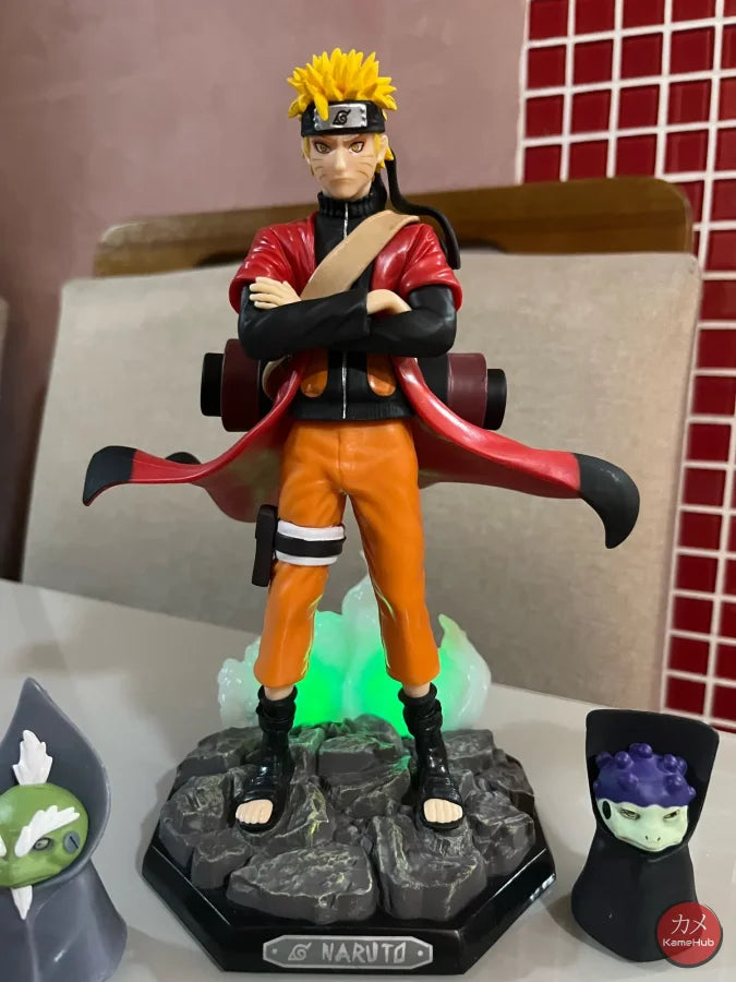 Uzumaki Naruto Sage Mode / Sennin Mode with Shima and Fukasaku Action Figure Unofficial Version 20cm with LED light (red, green and blue), made of PVC.