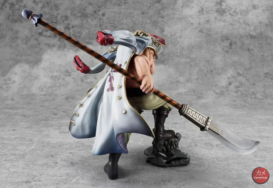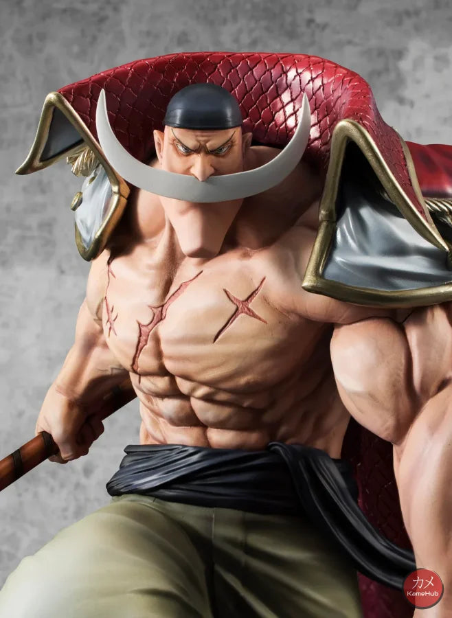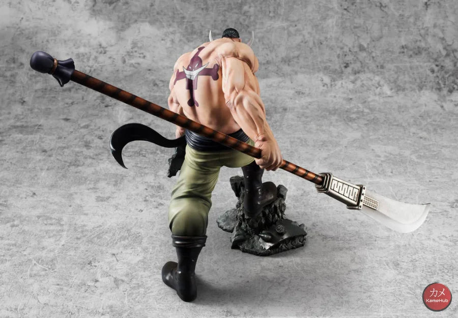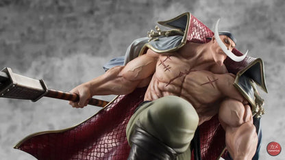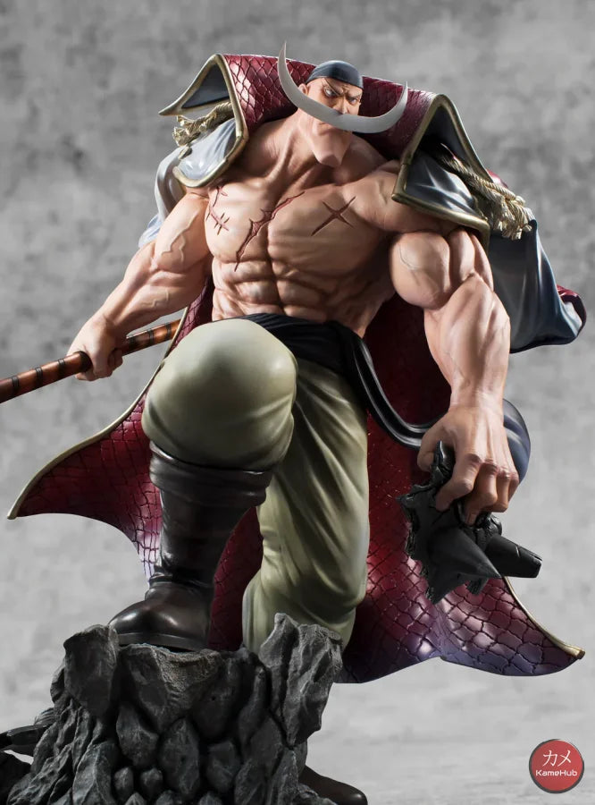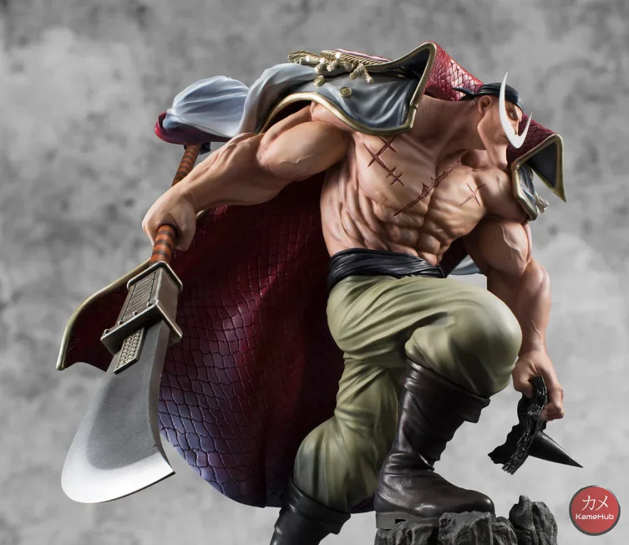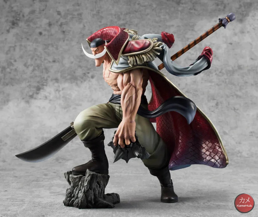 The Figure immortalizes Whitebeard in all his grandeur, a pose taken from the battle scene at Marineford, to save Portgas D. Ace from execution. His sharp gaze, massive muscles, his Murakomugiri (Cloud Cutter) and the character's distinctive beard were highlighted